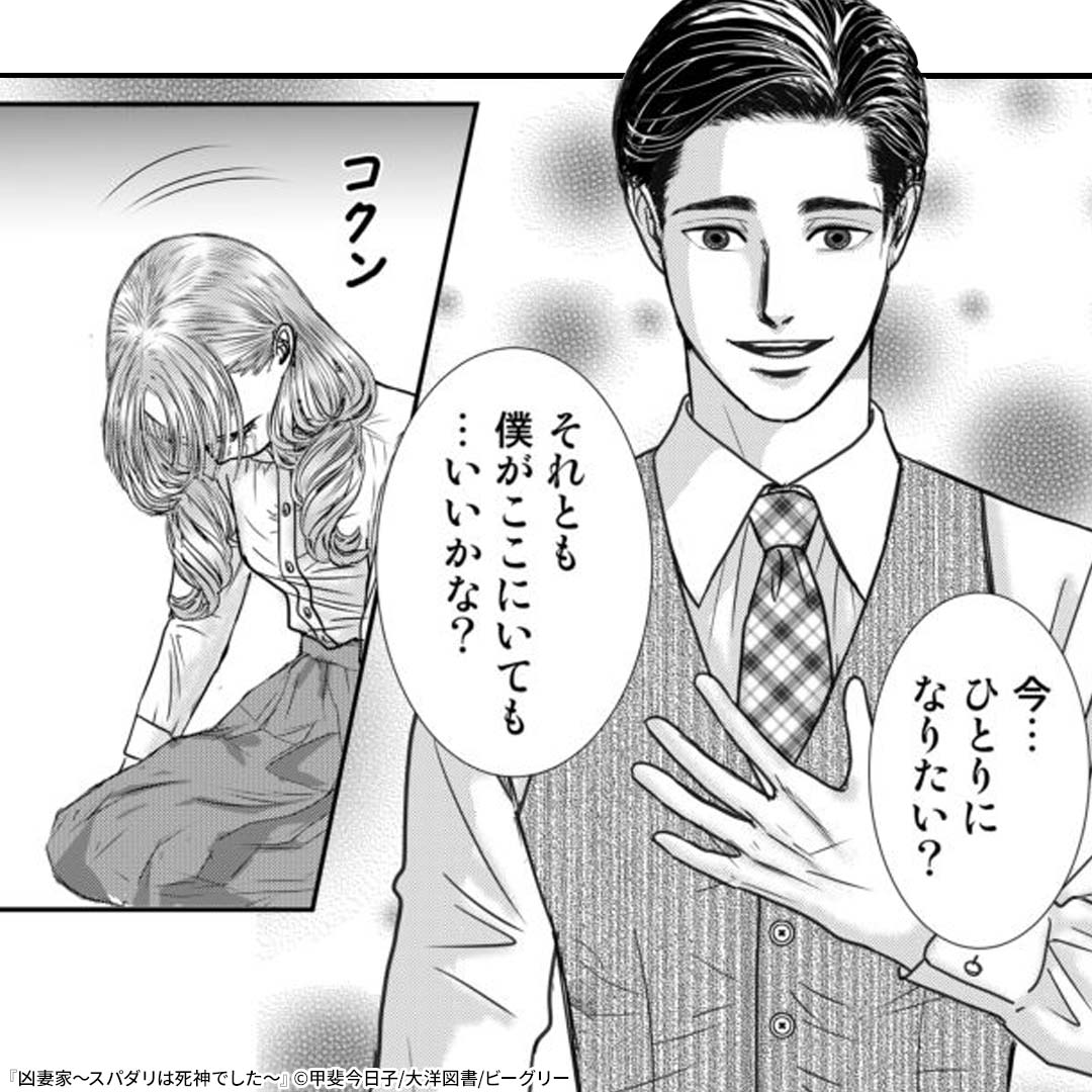 『凶妻家~スパダリは死神でした~』は、いじめの傷を抱えた妻のために、“完璧な夫(スパダリ)”が牙をむく制裁サスペンス。容姿端麗・高収入・優しい夫、朋彦。だがその裏には、妻を傷つけた者を決して許さない冷酷な一面が隠されていた。